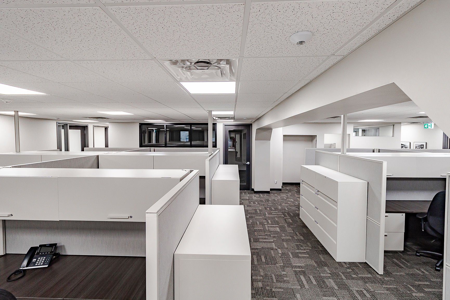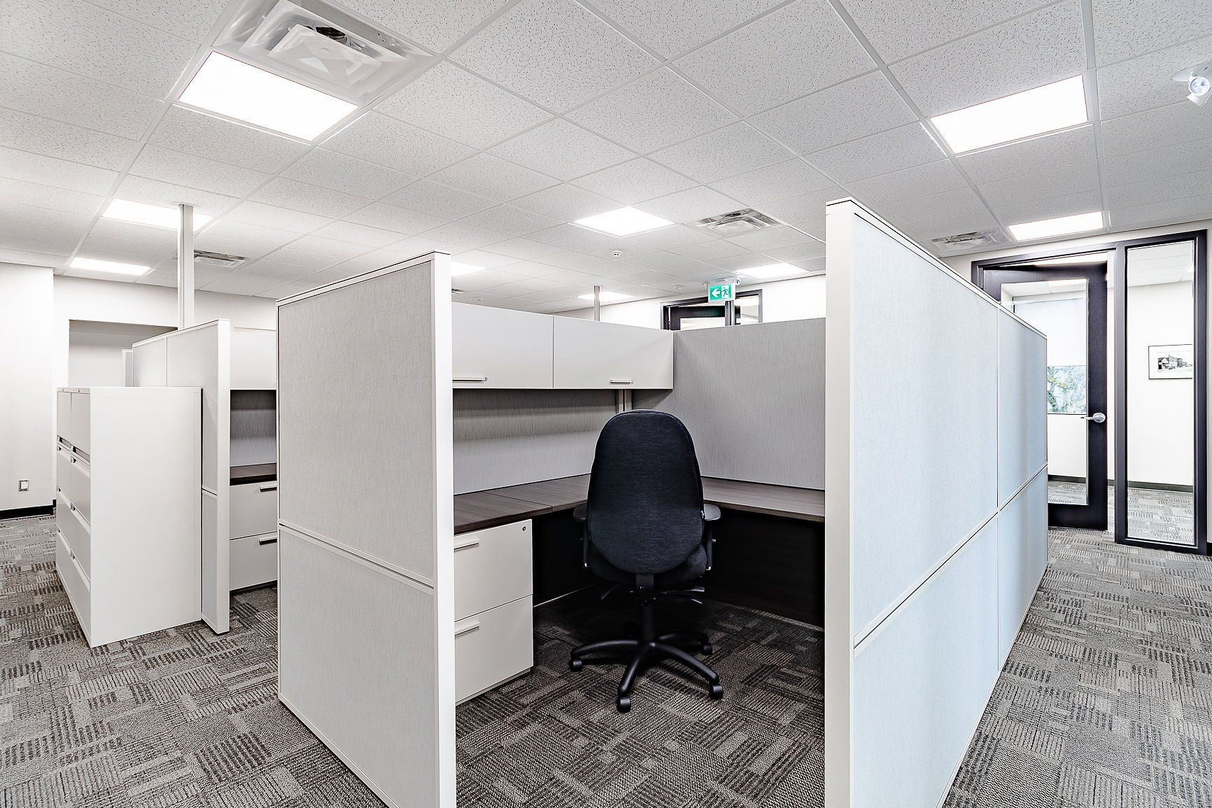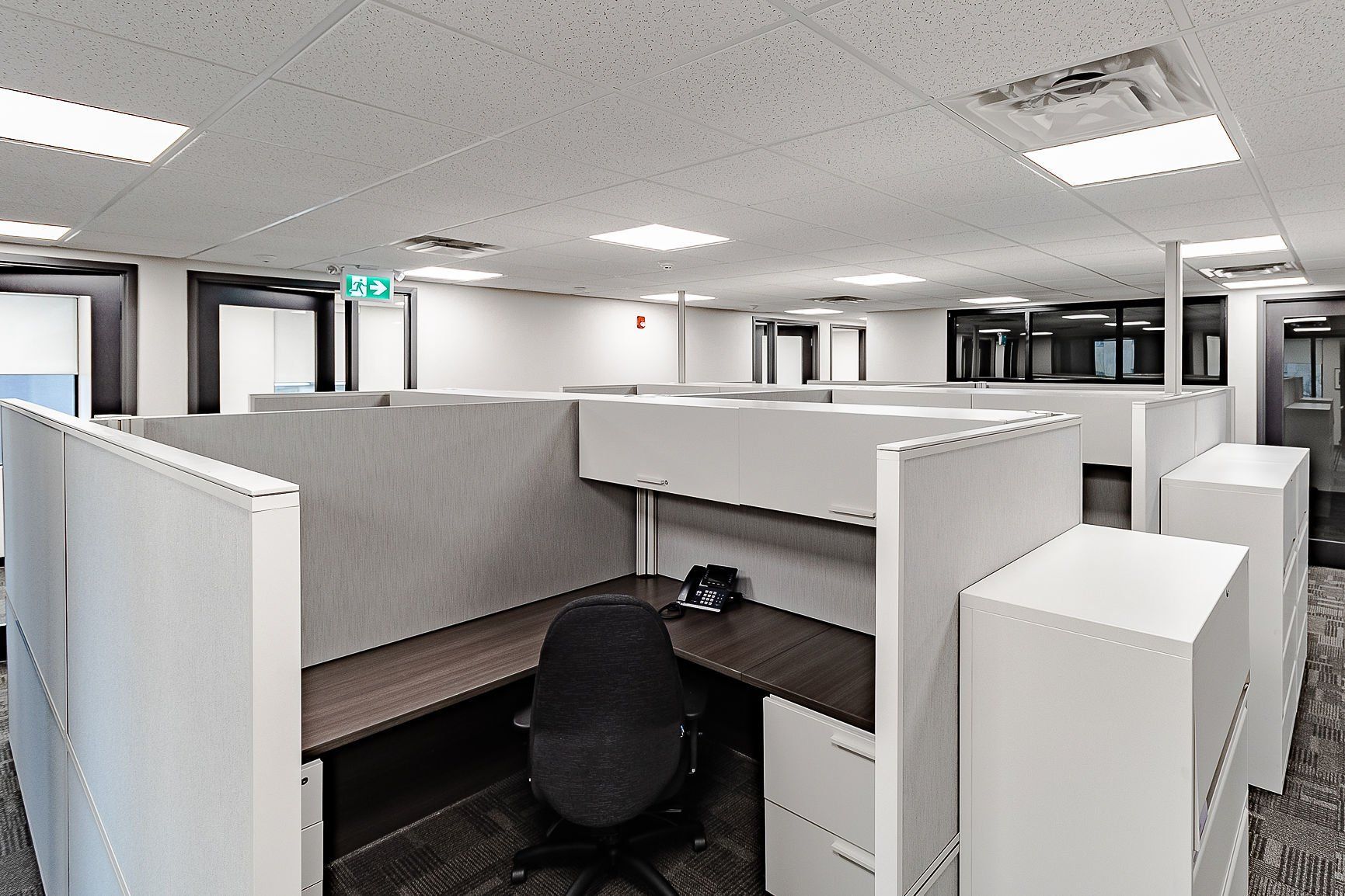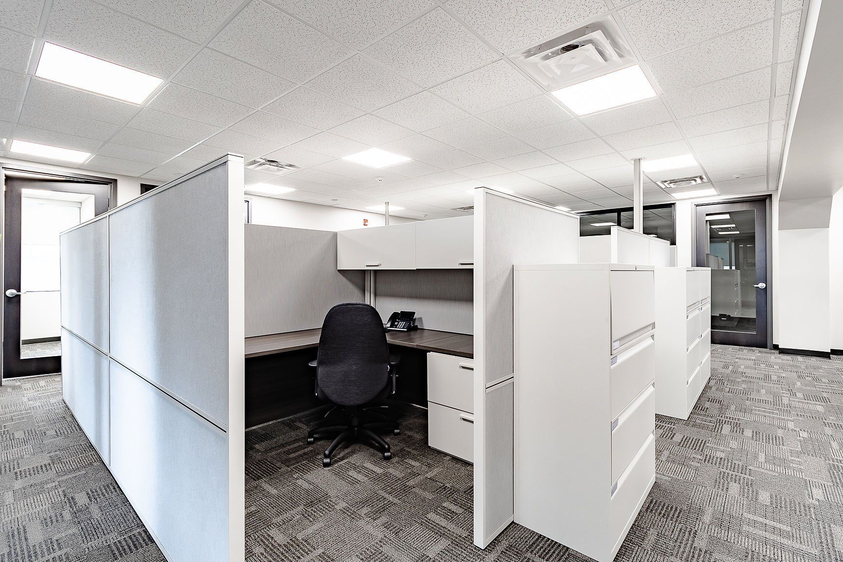 JRPC bookkeeping staff needed to have privacy, plenty of storage and enough desk space to have room for several files at a time, along with their sit/stand monitor arms and keyboard trays. They have filing for active files within their space, with additional filing cabinets placed just outside their entrance so they have access to all of their filing close by. Once again, furniture-supplied integrated electrical and communications help to keep the workspace tidy and uncluttered, while providing up to 8 duplex receptacles per workstation to accommodate their many peripheral devices.