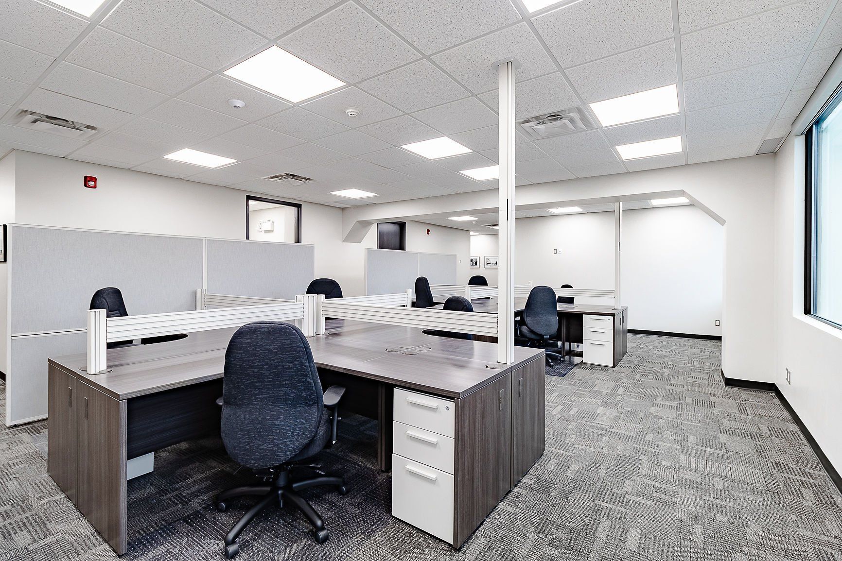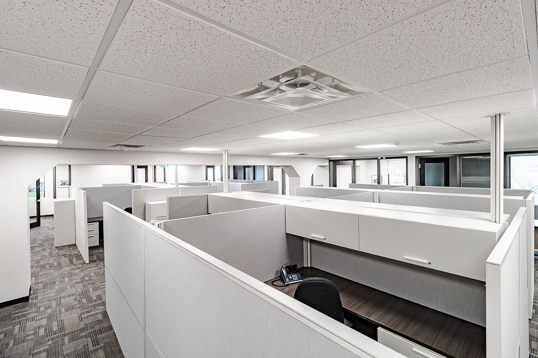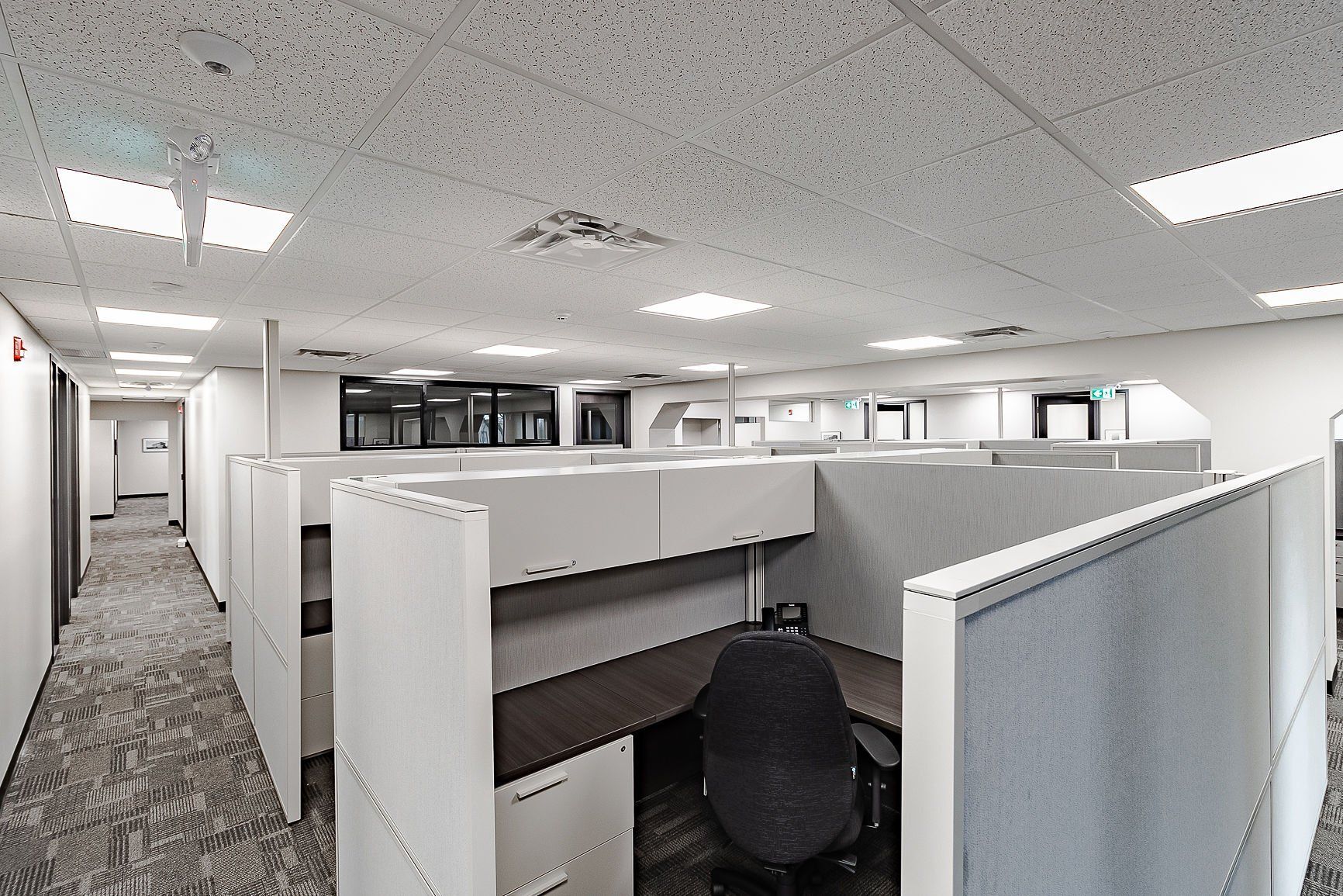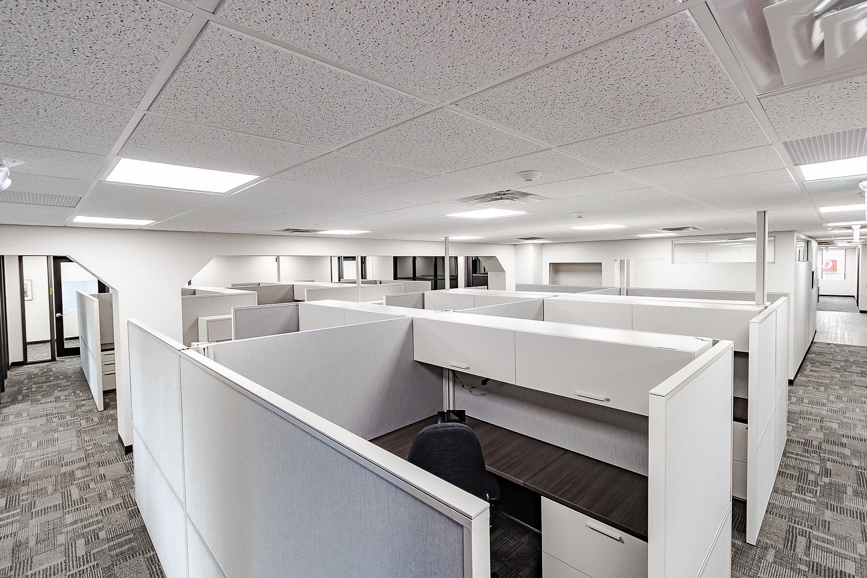 JRPC bookkeeping staff needed to have privacy, plenty of storage and enough desk space to have room for several files at a time, along with their sit/stand monitor arms and keyboard trays. They have filing for active files within their space, with additional filing cabinets placed just outside their entrance so they have access to all of their filing close by. Once again, furniture-supplied integrated electrical and communications help to keep the workspace tidy and uncluttered, while providing up to 8 duplex receptacles per workstation to accommodate their many peripheral devices.