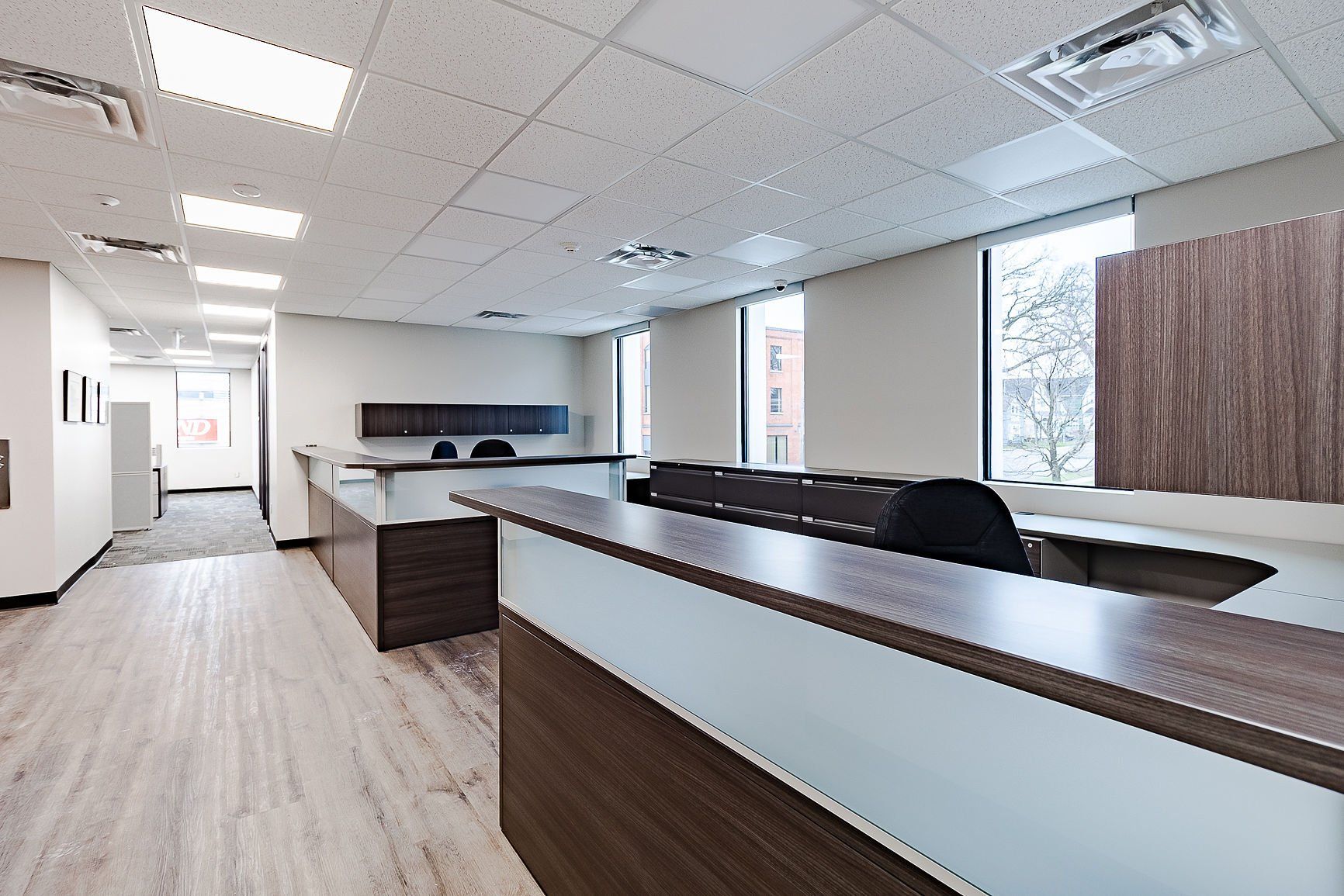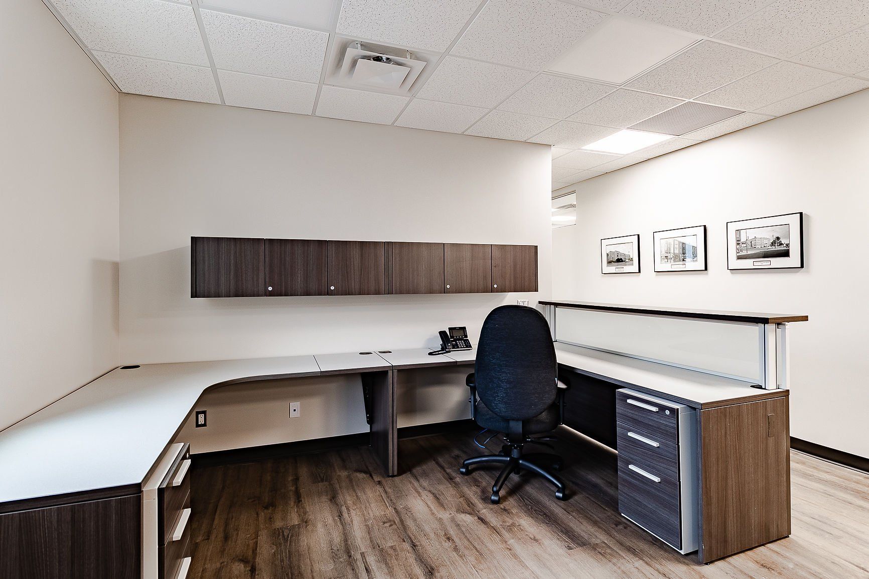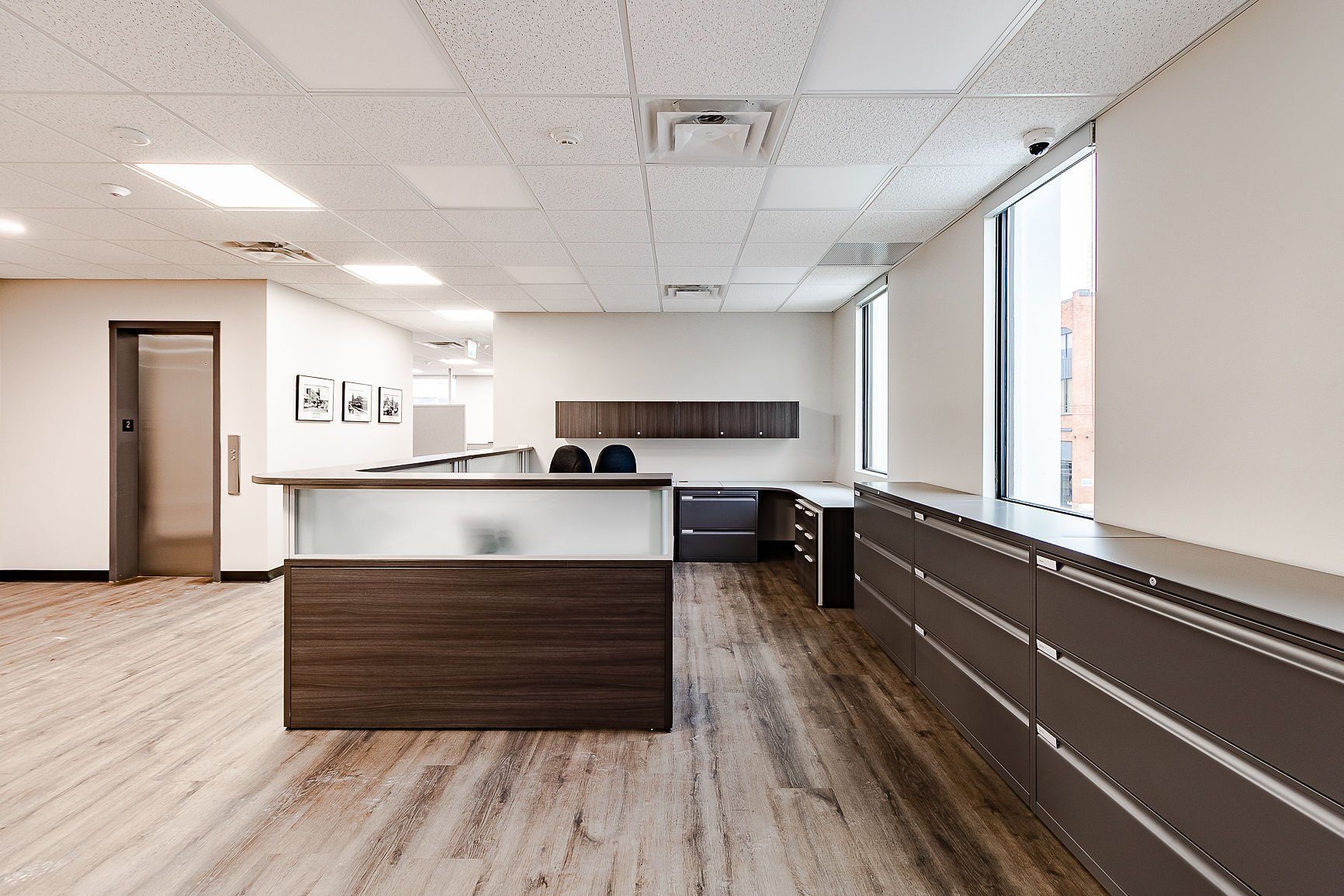 Beginning with the reception area, they wanted to convey an inviting and clean aesthetic, while maintaining a strict focus on the functionality of the space. The staff at reception require active file storage and room to accommodate 5 staff members during peak tax season. They needed space to move around and desk space for each staff member toensure efficicency and organization.