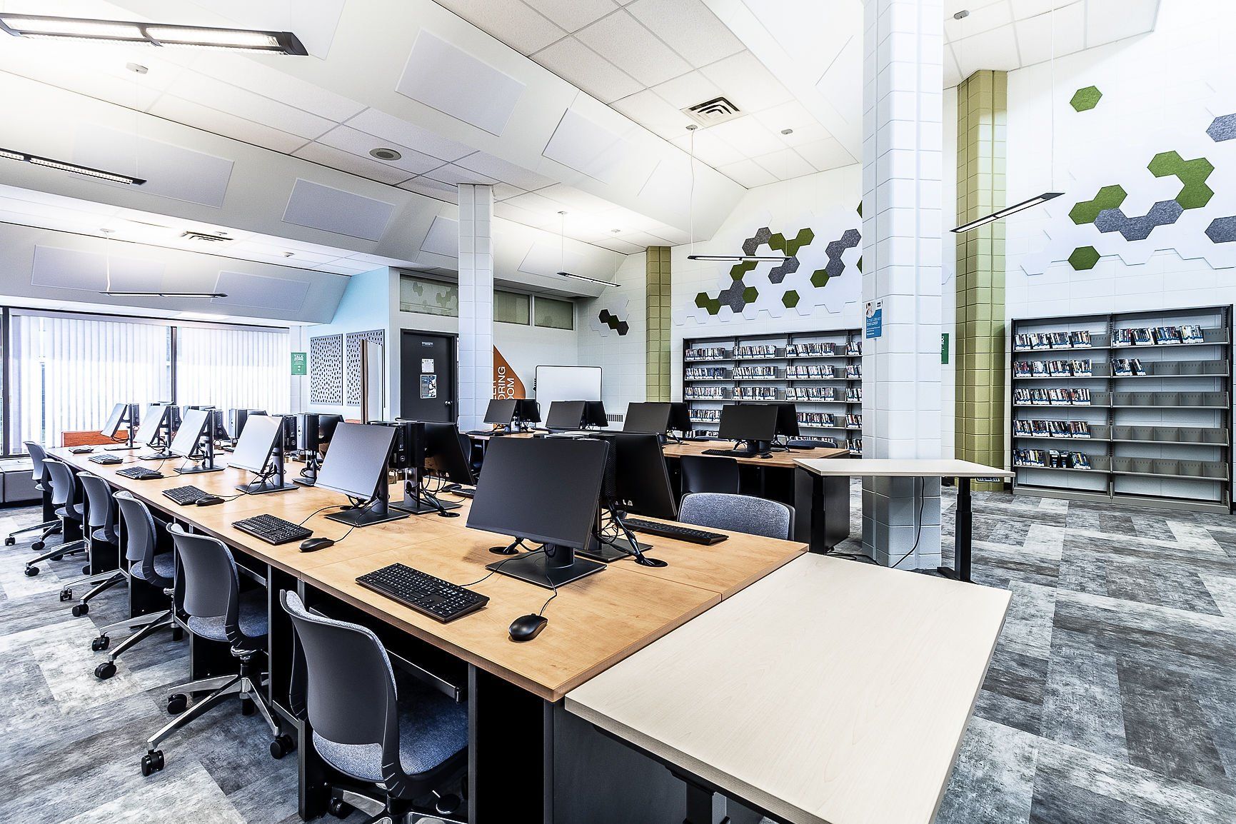 Ergo Office Plus was brought into the project early in the design phase to propose furniture and storage solutions that would facilitate all of the above design requirements, while also offering a modern, stylish aesthetic to support the library space into the future.