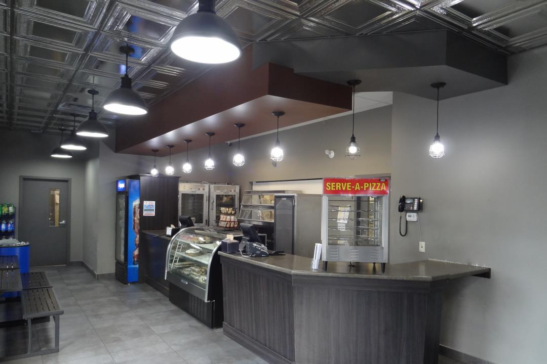 This take out pizza and spaghetti house is the second location for this long time, family-owned business in Sault Ste Marie. The design of this space maintains the original warmth of the original location to ensure the branding remains consistent while allowing us to add some modern elements. The high tin ceiling gives this space a classic traditional feel, while the modern light fixtures add an updated urban touch to thisspace. The multi-level bulkheads add depth to this small area and mimic the custom millwork to pull the entire space together as a unified design.