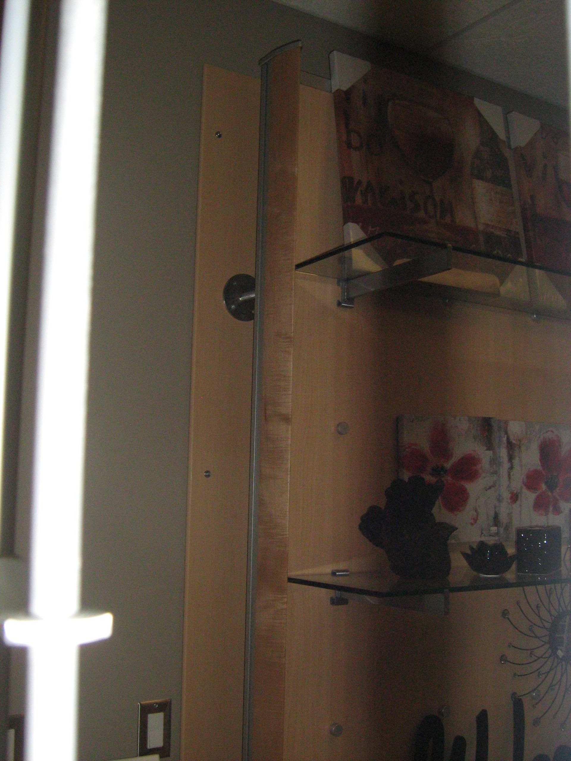 Located in the main lobby of Sault Area Hospital in Sault Ste Marie, Ontario, this retail gift shop is a fantastic example of maximizing a small space. The wood veneer panels with carved birds provide a fun backdrop for the combination of wood and glass shelving, and stainless accents display the gift shop items beautifully. The suspended glass shelving separating the main lobby from the gift shop provides a wonderful view through into the space and welcomes visitors in. The warmth of this space and the materials used blend seamlessly with the entire design intent of the newly designed hospital.